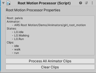 RootMotionProcessor: Do the pre-processing of the Unity3D Animator states and clips.